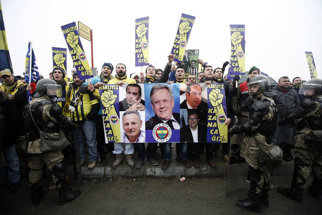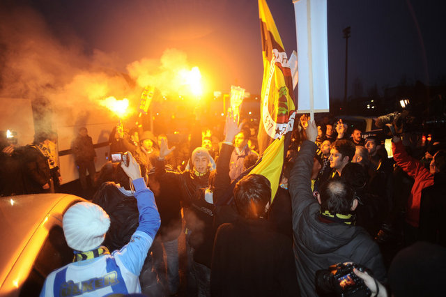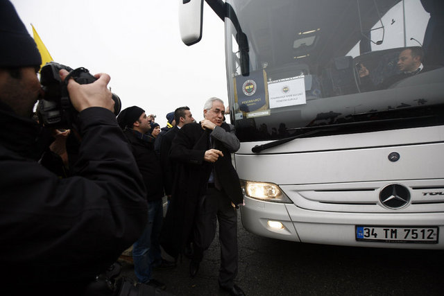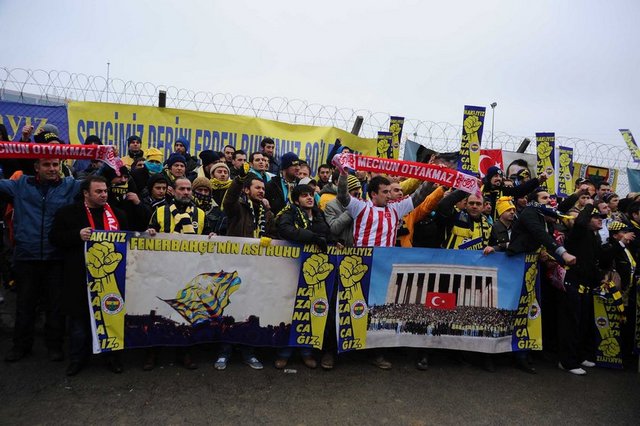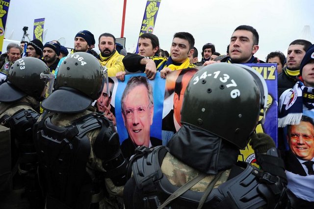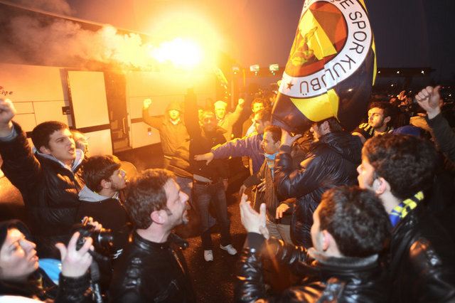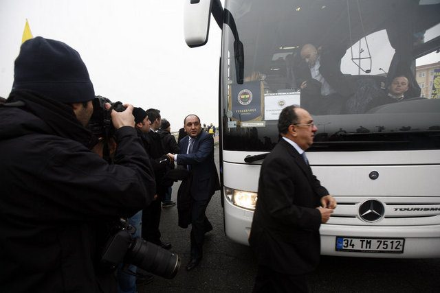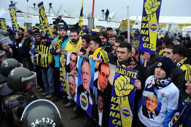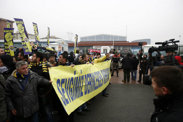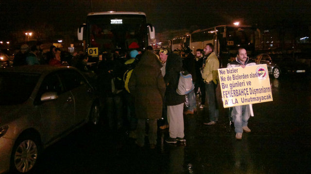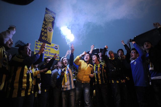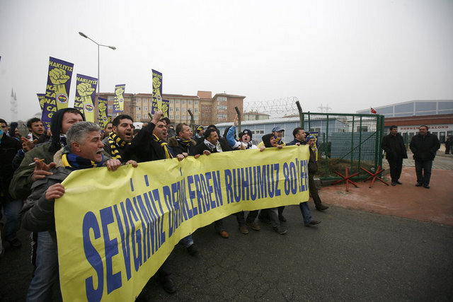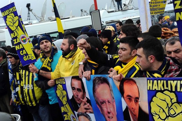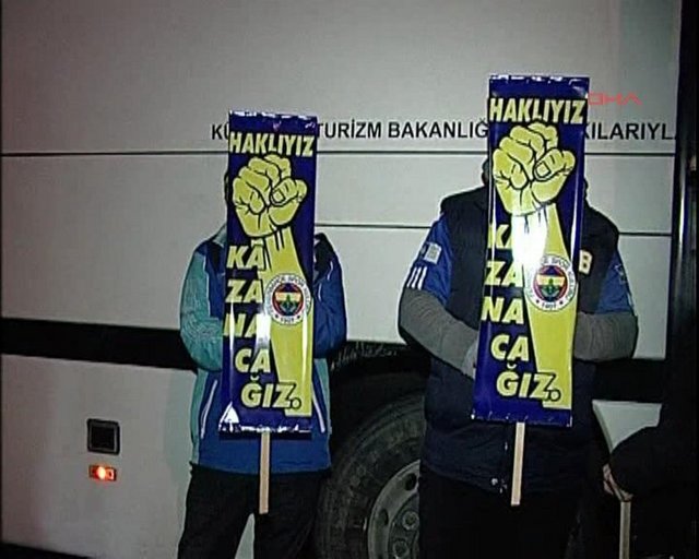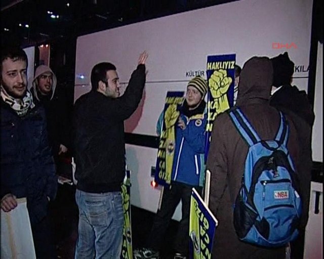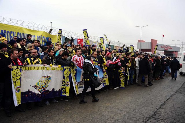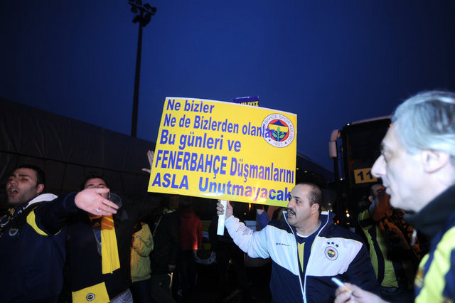 Fenerbahçeli taraftarlar ellerinde Aziz Yıldırım'ın fotoğraflarının yer aldığı pankartları açarak, "Aziz Yıldırım", "Aziz Yıldırım'ız biz", "İlker Başbuğ", "Sevdamıza kimse engel olamaz" diye sloganlar attı.