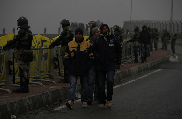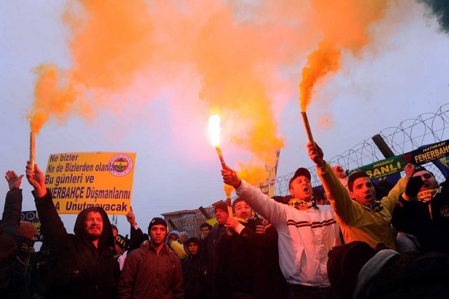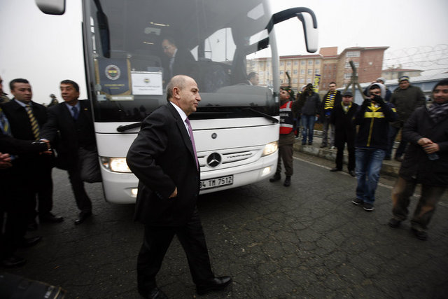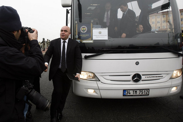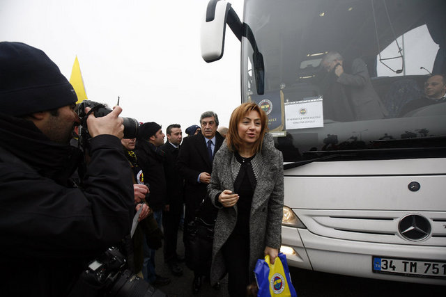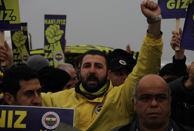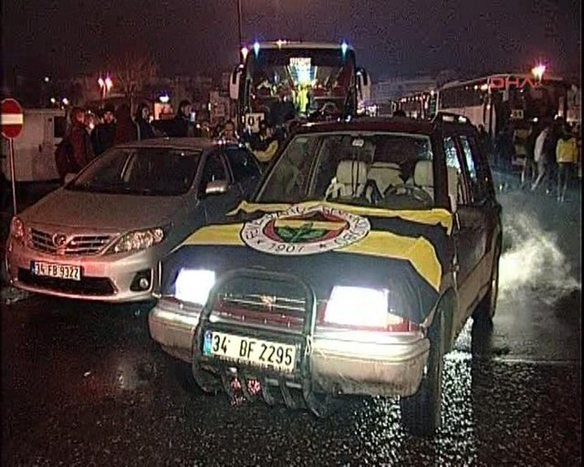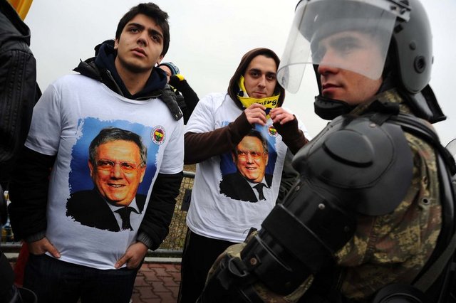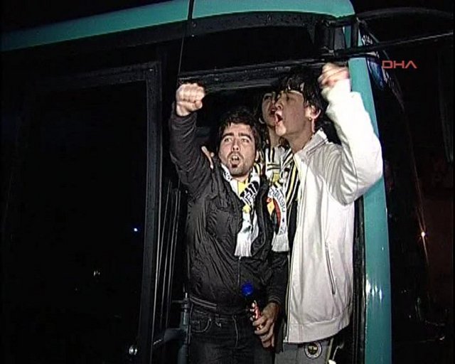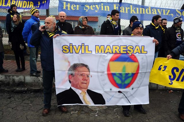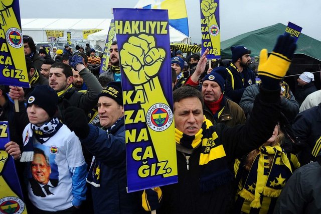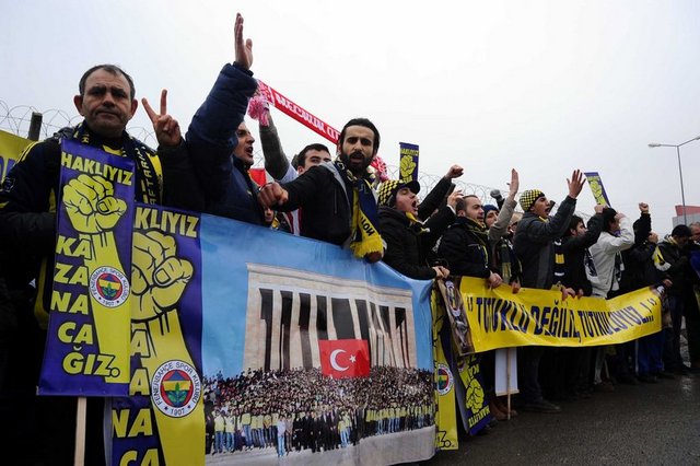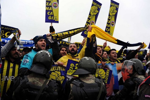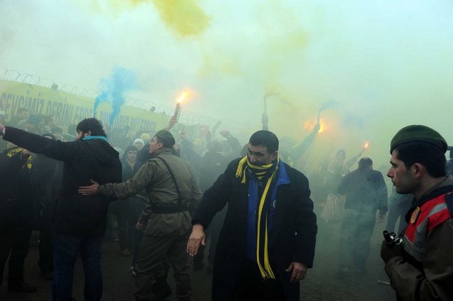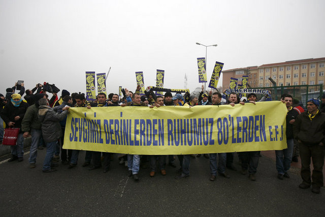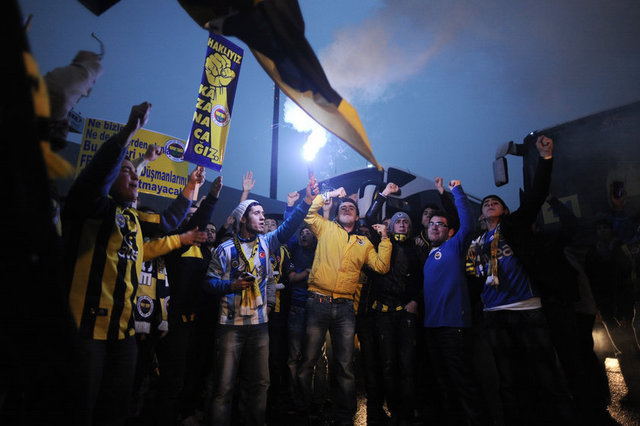 Fenerbahçeli taraftarlar ellerinde Aziz Yıldırım'ın fotoğraflarının yer aldığı pankartları açarak, "Aziz Yıldırım", "Aziz Yıldırım'ız biz", "İlker Başbuğ", "Sevdamıza kimse engel olamaz" diye sloganlar attı.
