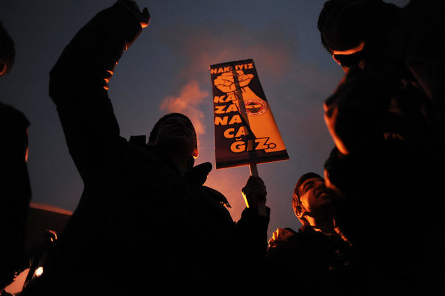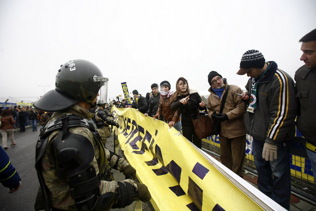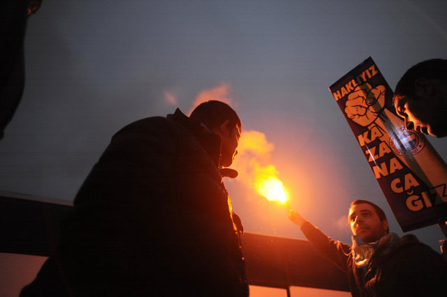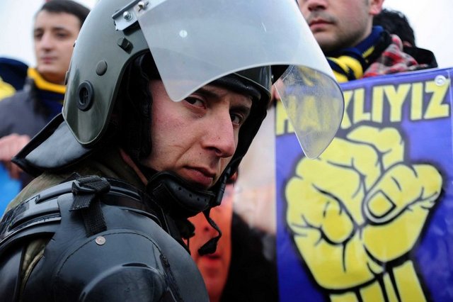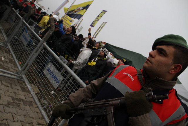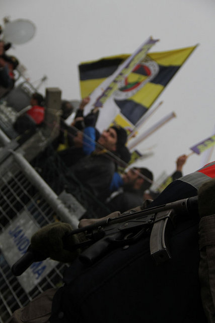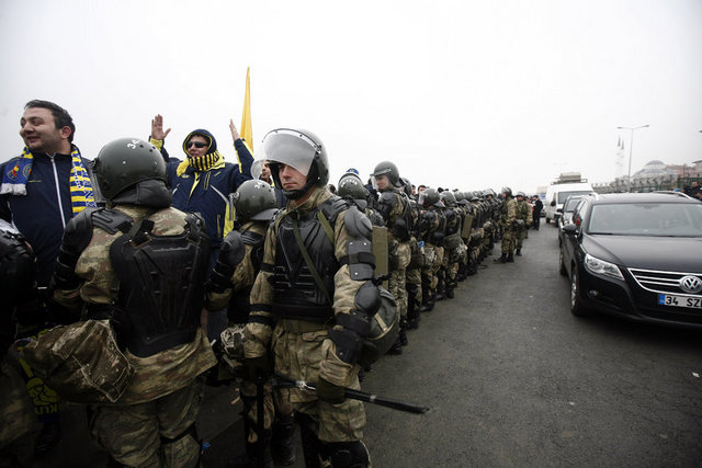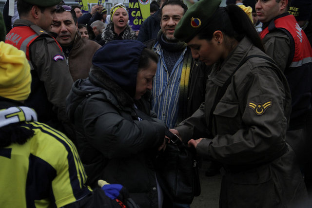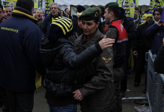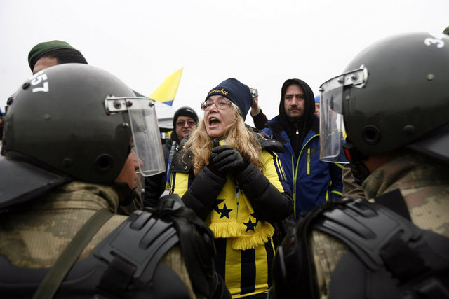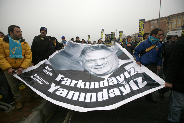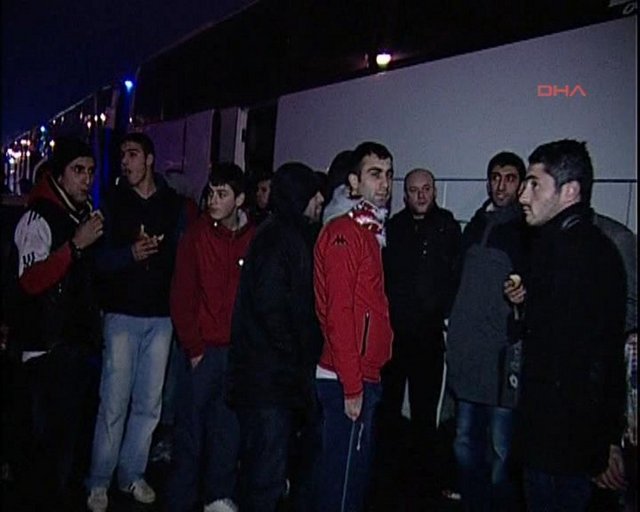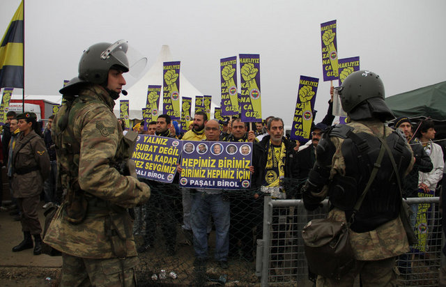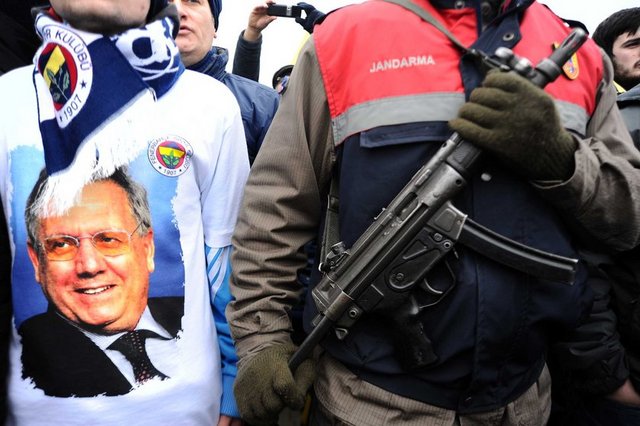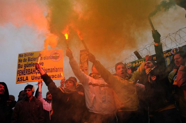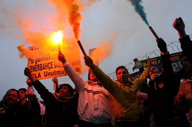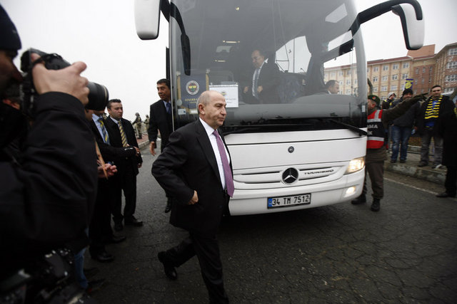 Fenerbahçeli taraftarlar ellerinde Aziz Yıldırım'ın fotoğraflarının yer aldığı pankartları açarak, "Aziz Yıldırım", "Aziz Yıldırım'ız biz", "İlker Başbuğ", "Sevdamıza kimse engel olamaz" diye sloganlar attı.