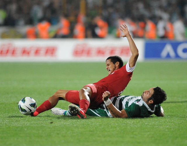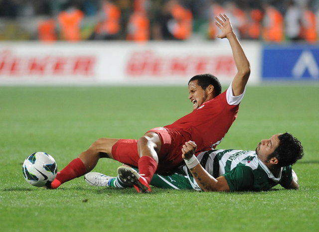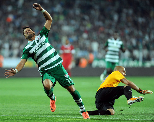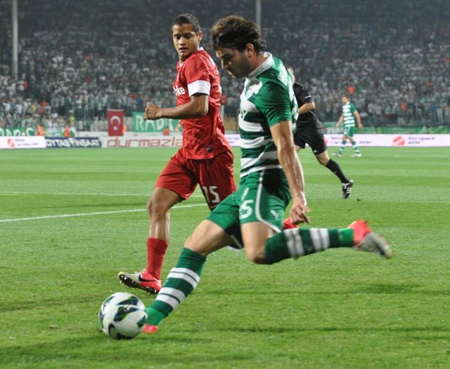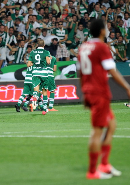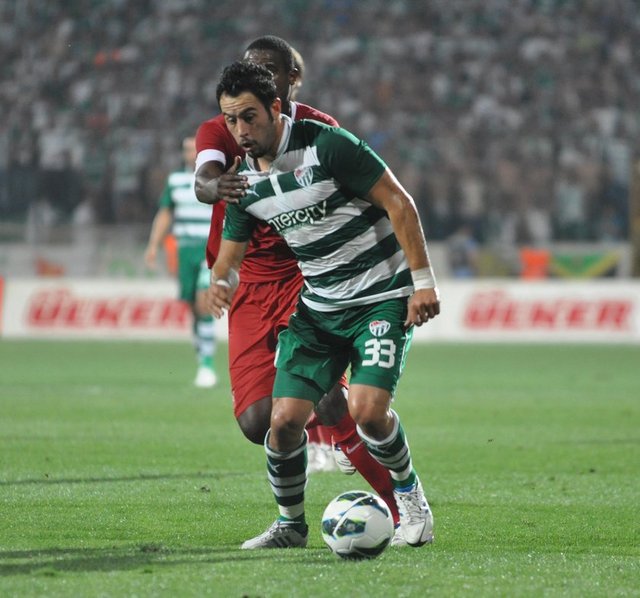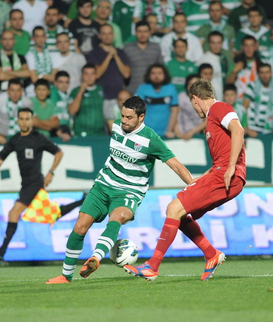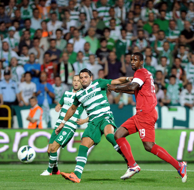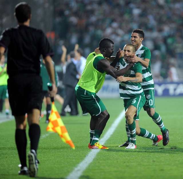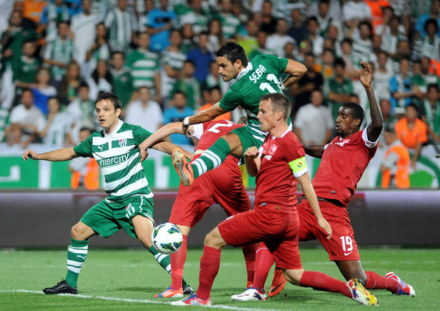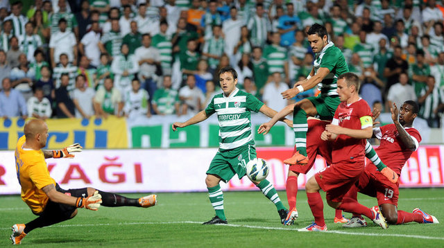 5. dakikada Bursaspor net bir gol pozisyonundan yararlanamadı. Pinto'nun ara pasıyla sol kanattan ceza sahasına giren Batalla, topu kale alanı içine ortaladı. Sestak'ın vuruşunda top kaleye paralel olarak yandan auta gitti.