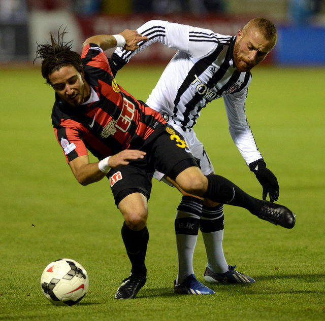 38. dakikada Erkan'ın pasında toplu buluşan Erman'ın Beşiktaş kalesine yaklaşık 25 metre uzaklıktan attığı sert şutta, siyah-beyazlı savunma oyuncularına çarpan top, kale direğinin yanından az farkla kornere çıktı.