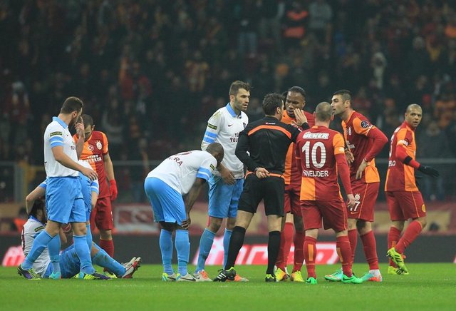 Sarı kartlar: Dk. 45+1 Mustafa Yumlu, Dk. 64 Bamba (Trabzonspor), Dk. 77 Riera, Dk. 79 Drogba (Galatasaray)