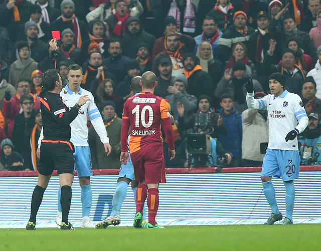 Konuk ekipte 76. dakikada Gustavo Colman, kırmızı kart gördü. Galatasaraylı oyuncu Riera ile girdiği pozisyonun ardından rakibiyle itişen Colman, sarı-kırmızılı oyuncuya tokat atınca, hakem Fırat Aydınus tarafından kırmızı kartla oyun dışına gönderildi. Trabzonspor'da 45+1. dakikada sarı kart gören Mustafa Yumlu, sarı kart ceza sınıra geldi. Daha önce Akhisar Belediyespor ve Fenerbahçe karşısında kart gören bordo-mavili oyuncu, Galatasaray karşısında üçüncü sarı kartına ulaştı.