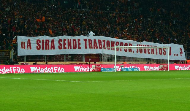 Galatasaraylı taraftarlar karşılaşma öncesinde tribünde açtıkları pankartlarla Trabzonspor'a jest yaptılar. Sarı-kırmızılı taraftarlar, takımlarının UEFA Şampiyonlar Ligi'nde elediği Juventus ile UEFA Avrupa Ligi'nde karşılaşacak Trabzonspor'a, "Sıra sende Trabzonspor, Juventus..." yazılı pankartla destek verdiler. Taraftarlar ayrıca Trabzonspor'un hak iddia ettiği 2010-2011 sezonu şampiyonluğuyla ilgili "İlla ki kazanır doğruluk, sizindir hak ettiğiniz şampiyonluk" şeklinde pankart açtılar.