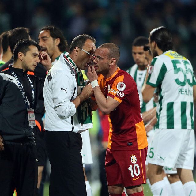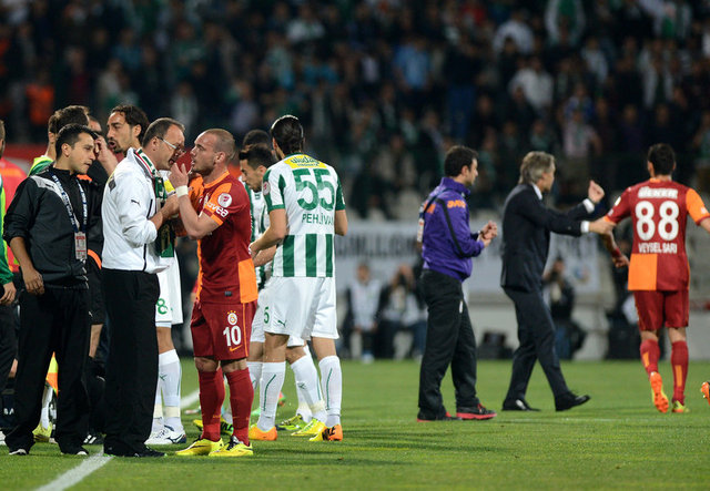 89. dakikada Sneijder'in Bursaspor ceza sahası sol çaprazından sert şutunda kaleci Frey, topu kornere çeldi.