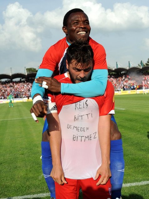 Ertekin, İstanbul Büyükşehir Belediyespor'u sahasında 2-1 yenen Balıkesirspor'un PTT 1. Lig'den Spor Toto Süper Lig'e yükselişinin sevincini, saha içinde paylaştı.