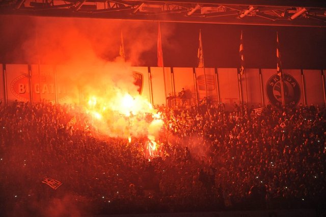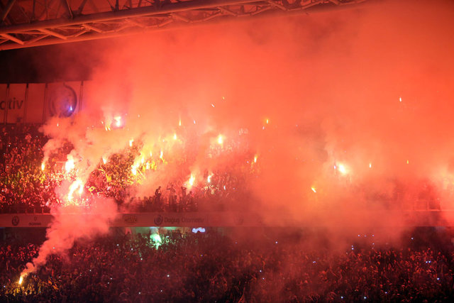 - Taraftarlar yaptıkları tezahüratlarda veya çalınan şarkılara eşlik ederken rakipleri Galatasaray'a göndermede bulundu. Tribündekiler, sarı-kırmızılı ekibe yönelik küfürlü tezahürat da yaptı.