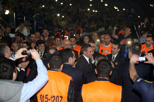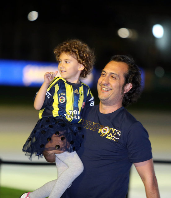 Kapılar açıldıktan yaklaşık bir saat sonra yönetim kurulu üyeleriyle beraber stat içinden geçerek protokol tribününün bulunduğu bölüme doğru gelen Fenerbahçe Kulübü Başkanı Aziz Yıldırım'a taraftarlar yoğun sevgi gösterilerinde bulundu. "Her yer Aziz, her yer Yıldırım" şeklinde tempo tutan taraftarların tezahüratları eşliğinde yürüyen Fenerbahçe başkanı, tribünlere el sallayarak taraftarı selamladı. Kutlamalar için stat kapıları saat 18.00'den itibaren açıldı.