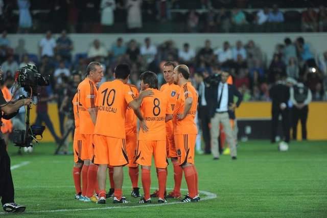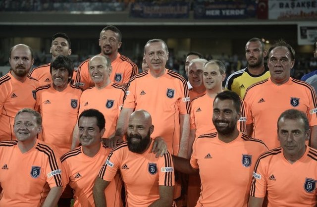 Erdoğan'ın takımında; oğlu Bilal Erdoğan'ın yanı sıra Gençlik ve Spor Bakanı Akif Çağatay Kılıç da forma giydi. Türkiye Futbol Federasyonu Başkanı Yıldırım Demirören, İstanbul Başakşehir Futbol Kulübü Başkanı Göksel Gümüşdağ, teknik direktör Abdullah Avcı da aynı ekipte yer aldı. Bu ekibin kalesini İstanbul Büyükşehir kalecisi Ufuk Ceylan korurken, milli basketbolcu Hidayet Türkoğlu ile AK Parti İl Başkanı Aziz Babuşcu da yedekler arasında kendilerine yer buldu.