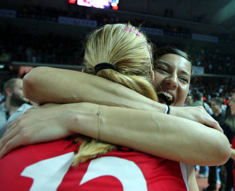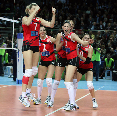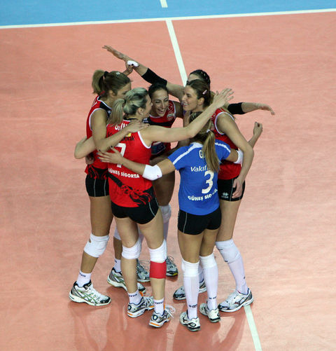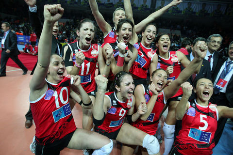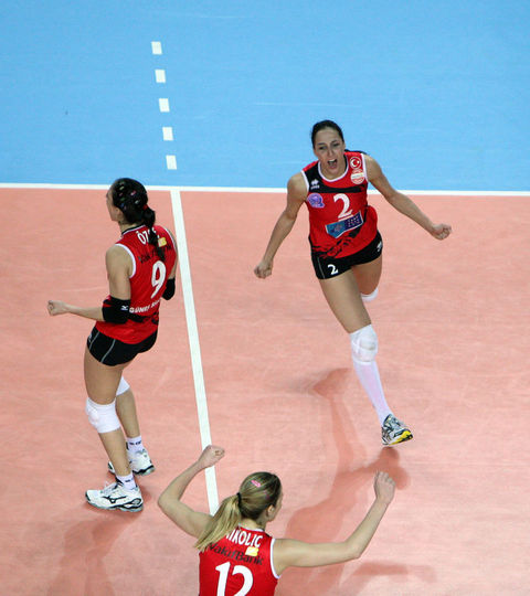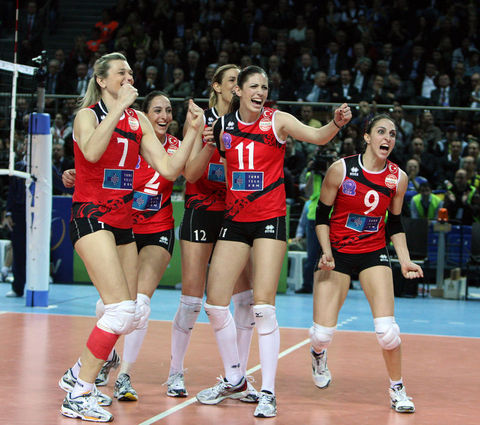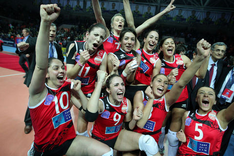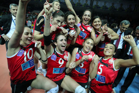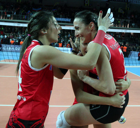 Voleybol Bayanlar Avrupa Şampiyonlar Ligi Dörtlü Finali'nde Azerbaycan'ın Rabita Bakü takımını 3-0 yenerek şampiyon olan Vakıfbank Güneş Sigorta Türk Telekom oyuncuları ve teknik heyeti karşılaşmanın bitiminde büyük bir sevinç yaşadı.