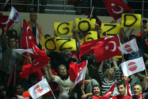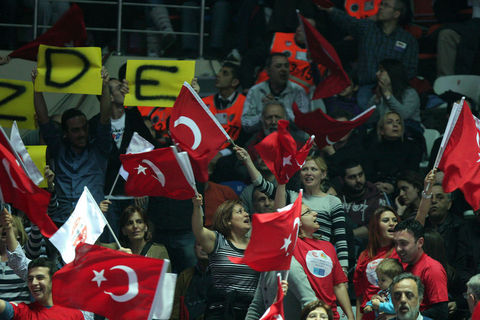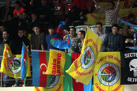 Burhan Felek Spor Salonu'nda bulunan bir grup Fenerbahçe taraftarı, Vakıfbank Güneş Sigorta Türk Telekom-Rabita Bakü maçında Azeri takımını destekledi.