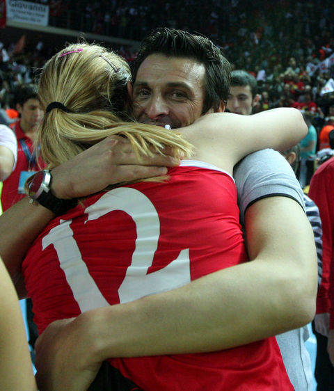 Saha ortasında birbirleriyle sarmaş dolaş olan oyuncular ve teknik heyet şampiyonluğu doyasıya kutlarken salonu dolduran taraftarlar da büyük bir coşkuyla şampiyonluk şarkıları söyledi.