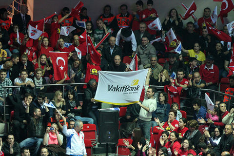 Vakıfbank Güneş Sigorta Türk Telekom oyuncularına sahaya ısınmak için çıktıklarında tepki gösteren taraftarlar, daha sonra Rabita Bakü bayrakları açtı.