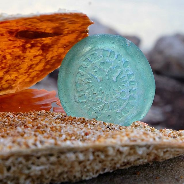 Üzerinde 150 yazan muhteşem bir deniz camı parçası