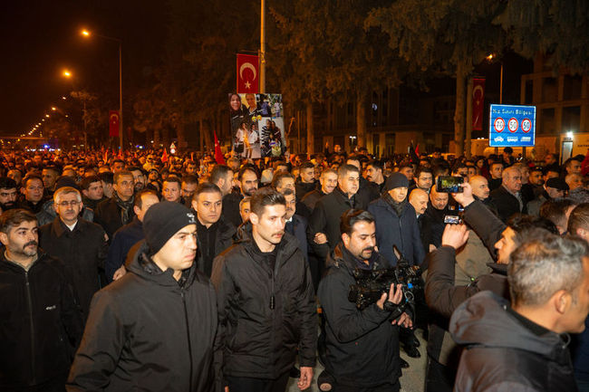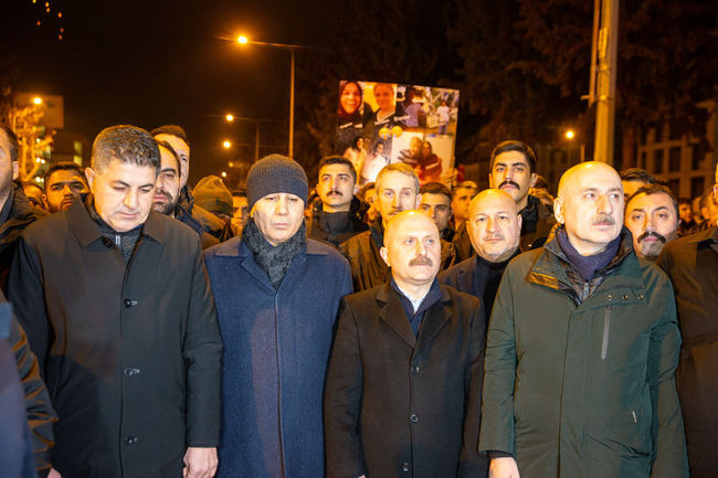 Tevfik Temelli Caddesi'ndeki Sümerpark girişinde toplanan vatandaşlar, meşale yakarak saygı duruşunda bulundu.