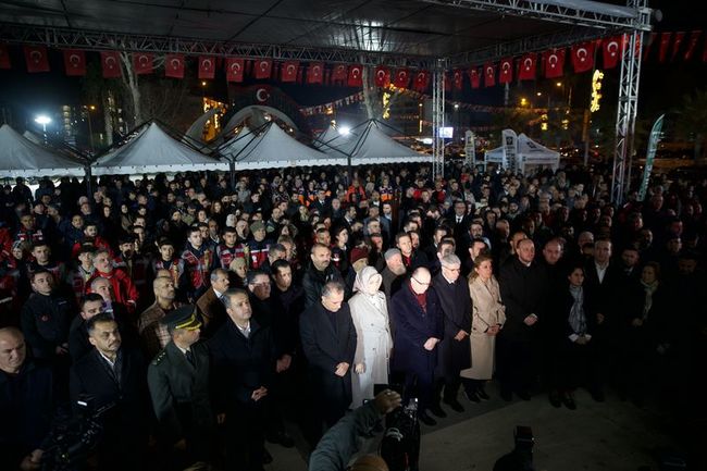 Kahramanmaraş merkezli ilk depremin meydana geldiği saat 04.17'de saygı duruşunda bulunan katılımcılar, İstiklal Marşı okudu.