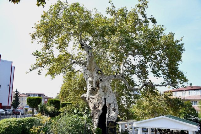 Kocaeli'nin Darıca ilçesinde görkemli yapısıyla ilgi çeken 860 yıllık çınar ağacı, adeta zamana meydan okuyor