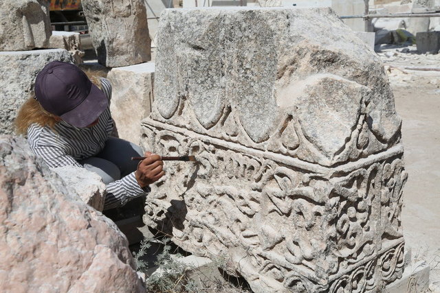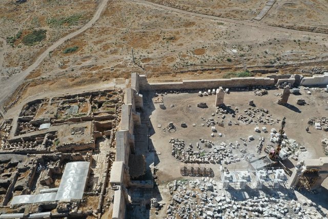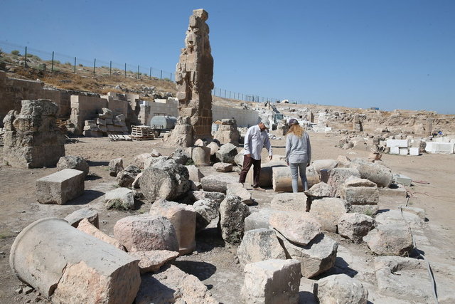 Kazı çalışmalarıyla taş ayaklar, sütunlar, konik başlı sütunlar ve pembe mermer tamburların ortaya çıktığını anlatan Önal, "Büyük oranda taş ayaklar ve sütunlar belli oldu. Şu an 101 tane taş ayak ve sütun var.