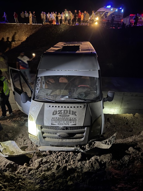 Mardin'in Kızıltepe ilçesinde tütün işçilerini taşıyan minibüs, inşaat halindeki sulama kanalına uçtu. Kazada, 21 kişi yaralandı.