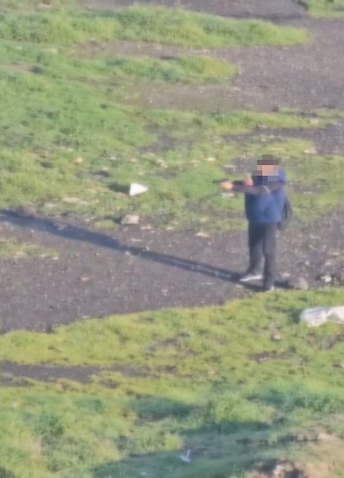 Esenyurt'ta ortaokulda okuyan iki öğrencinin okulun yanındaki boş arazide kurusıkı tabancayla ateş ettiği anlar cep telefonu kamerasıyla kaydedildi.