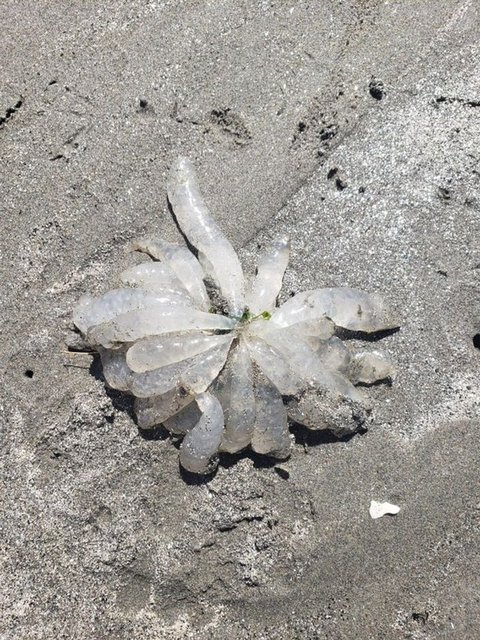 Sahilde bulunan ve jel bir tüp gibi duran bu canlının ne olduğunu tahmin edebilir misiniz? Eğer bir fikriniz yoksa bu canlının kalamar yumurtası olduğunu söyleyelim. Genellikle deniz tabanında olan kalamar yumurtası bazı durumlarda bu karede olduğu gibi sahile vurabiliyor.