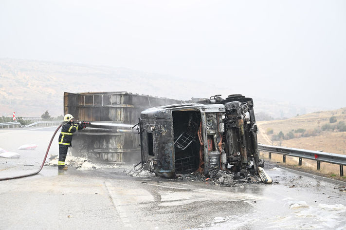 Haberler Gündem Güncel TIR'lar çarpıştı, yangın çıktı! | Son dakika haberleri