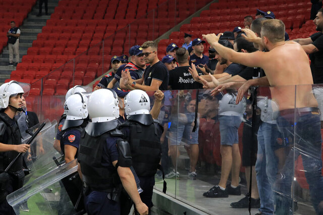 Yapılan uyarılar, tribünlere Arnavutça ve Türkçe anonsların ardından hakemler orta sahaya yöneldi.