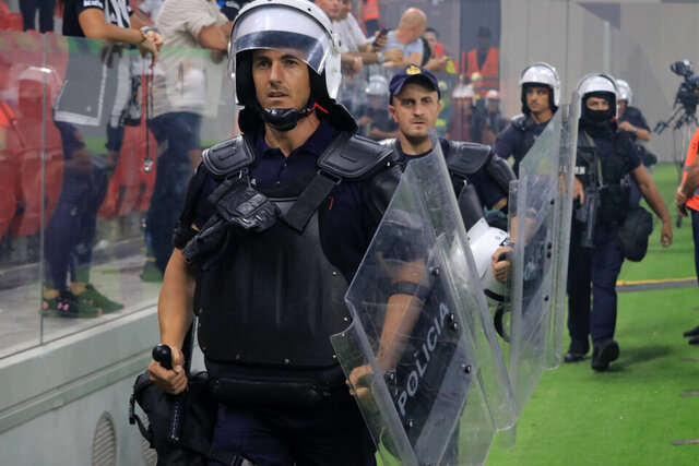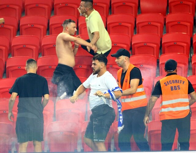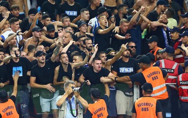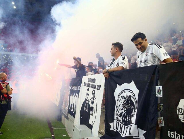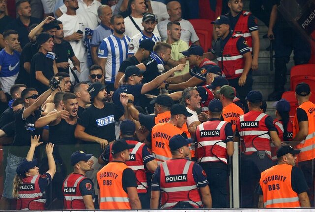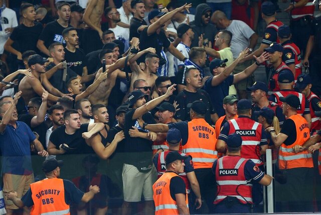 Meşalelere karşın Arnavut seyirciler de sahaya girerek Beşiktaş taraftarlarına saldırı teşebbüsünde bulundu.