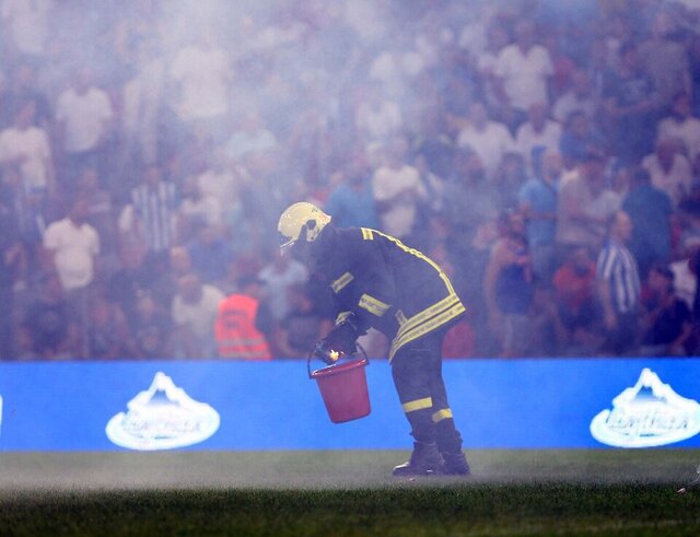 Taraftarların meşale atmasının ardından karşılaşmanın hakemi Stuart Atwell, takımları soyunma odasına yolladı.