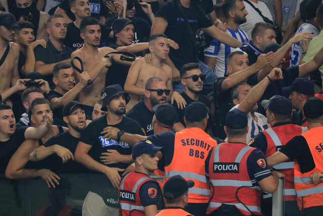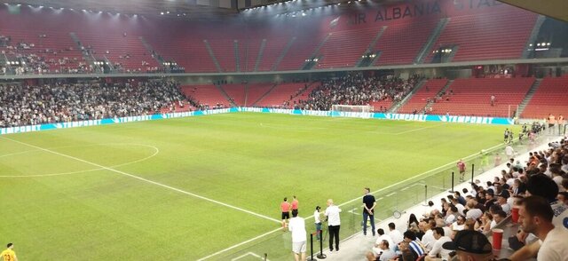 Kombetare Arena´da saat 21.00´de başlaması gereken karşılaşma, Beşiktaş tribünlerinden sahaya atılan meşaleler dolayısıyla başlayamadı.
