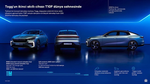 Bu arada Togg T10F, T10X gibi kullanıcısını merkeze koyan, akıllı yaşam çözümleriyle sürekli internetin içinde olan ve uzaktan güncellemelerle sürekli gelişen ve yeni kalan bir cihaz olarak tasarlandı.