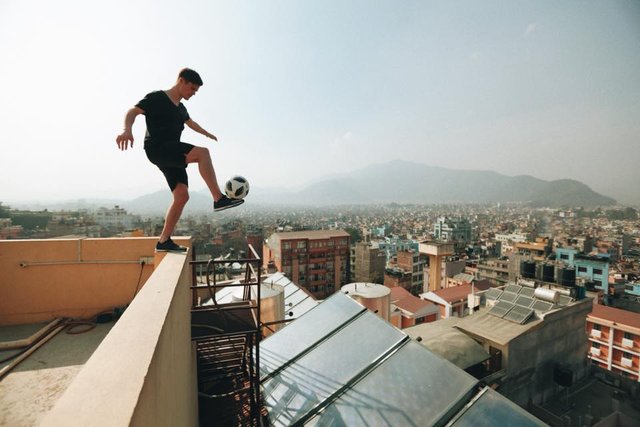 Futbolcu John Farnworth, yol boyunca ayağında sektirdiği top ile birlikte Everest'e çıktı