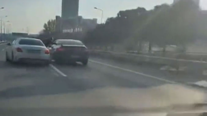 Basın Ekspres Atatürk Havalimanı önünde ilerleyen iki otomobilin sürücüsü trafikte tartışmaya başladı. 3 şeritli yolu paylaşamayan sürücüler birbirlerinin yolunu kesti, zaman zaman da araçlarını adeta birbirine sürterek ilerledi.