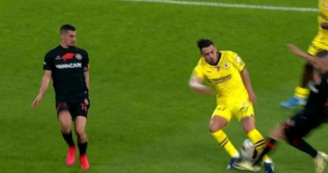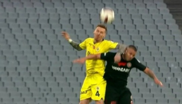 Deniz Çoban: Şüphe yok sarı kartta. Kırmızı kart olmaz mı tartışması olabilir. Oyuncunun başına ne geldiğinden bağımsızdır. Kolunu kontrolsüz açıyor. Eklemden hareket ettirerek silah olarak kullanmış olsa kırmızı kartı düşünürüz. Kırmızı kartlık ihlal yok.