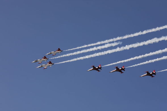 Gösteriler, SOLOTÜRK'ün yaptığı akrobatik manevralarla başladı. Yüksek hızda yapılan keskin dönüşler ve alçak uçuşlar izleyenlerin nefesini kesti. Ardından sahneye çıkan Türk Yıldızları, gösterilerine gökyüzüne ay-yıldız çizerek başladı.