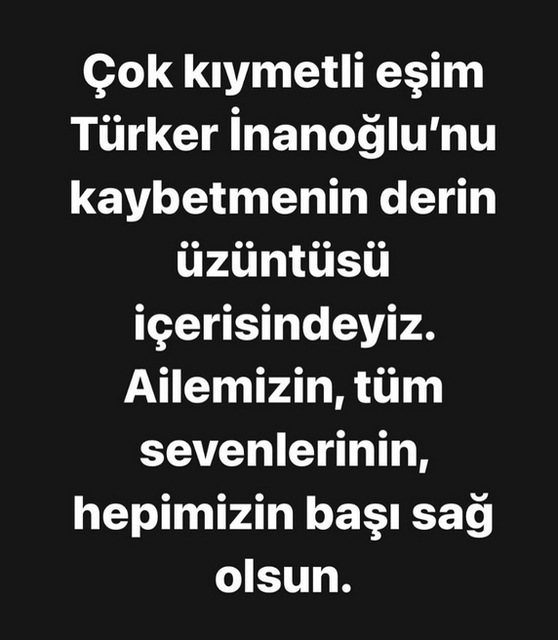 Gülşen Bubikoğlu, "Çok kıymetli eşim Türker İnanoğlu'nu kaybetmenin derin üzüntüsü içerisindeyiz. Ailemizin, tüm sevenlerinin, hepimizin başı sağ olsun" dedi.