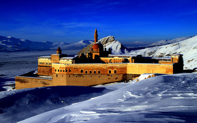 "Medeniyetler beşiği" olarak anılan bölgedeki birçok tarihi eser arasında ilk sıralarda yer alan İshak Paşa Sarayı, sunduğu görsel güzelliklerle ilgi odağı oluyor. Eğer yolunuz Ağrı'ya düşerse karlar altındaki İshakpaşa Sarayı'nı görmenizi tavsiye ederiz.