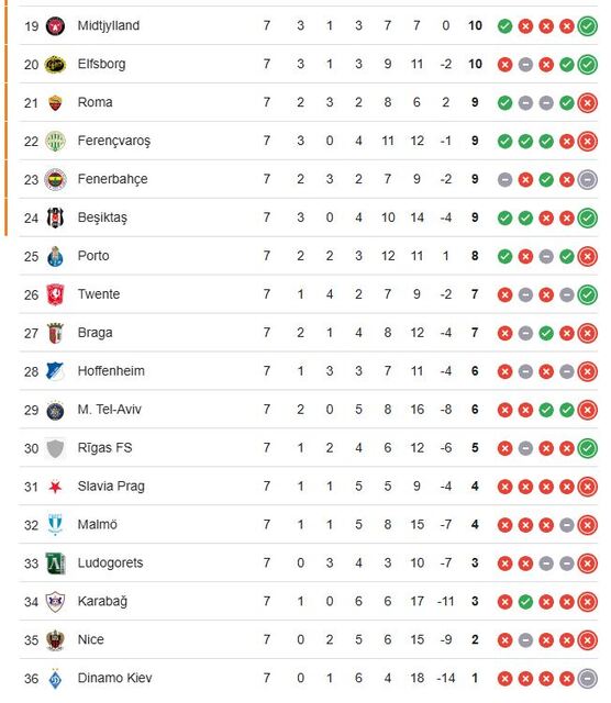 UEFA AVRUPA LİGİ PUAN DURUMU