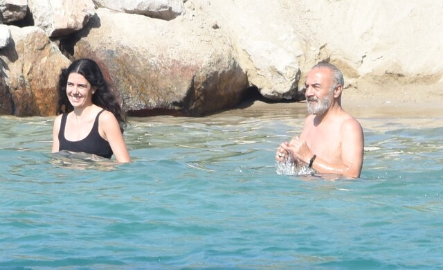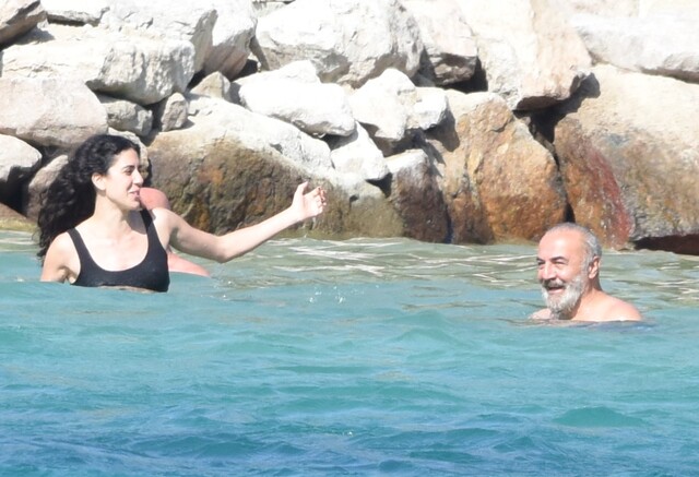 Yılmaz Erdoğan ile Cemre Ebüzziya denizde bir süre sohbet etti.