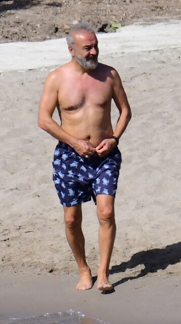 Emekli basketbolcu İbrahim Kutluay da plajdaydı.