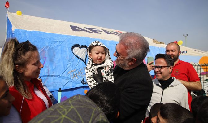 Türkiye'yi yasa boğan Kahramanmaraş merkezli yıkıcı depremlerden etkilenen Gaziantep'in İslahiye ve Nurdağı ilçelerinde konteyner ve çadır kentleri gezen ünlü isimler, bir depremzedenin kaldığı AFAD çadırına İstanbul'un fethini çizdiler