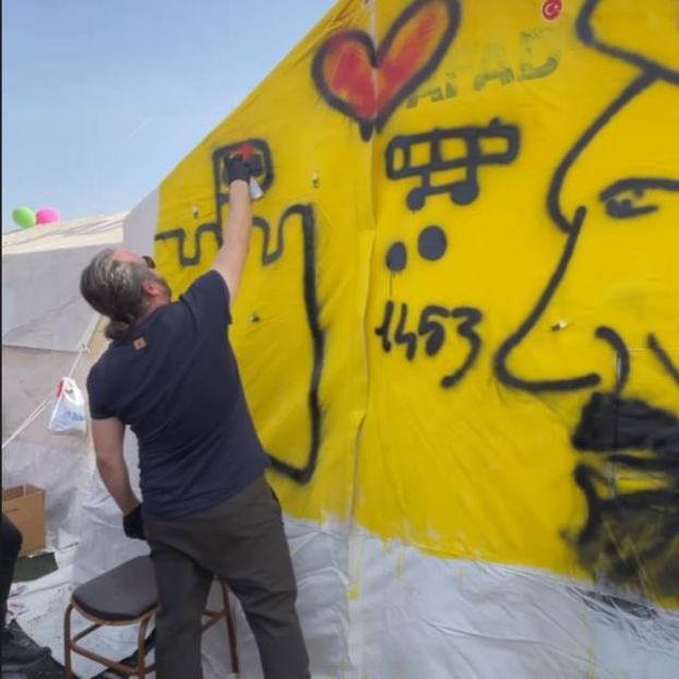 Ünlüler depremzedelerin kaldığı çadırlara grafiti yaptı