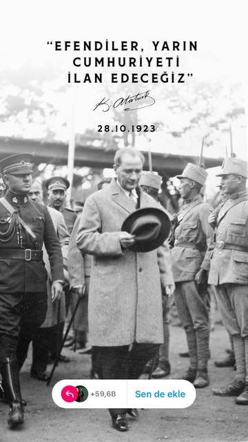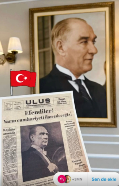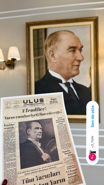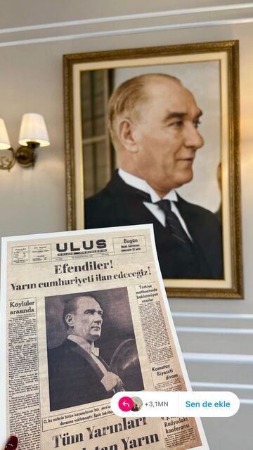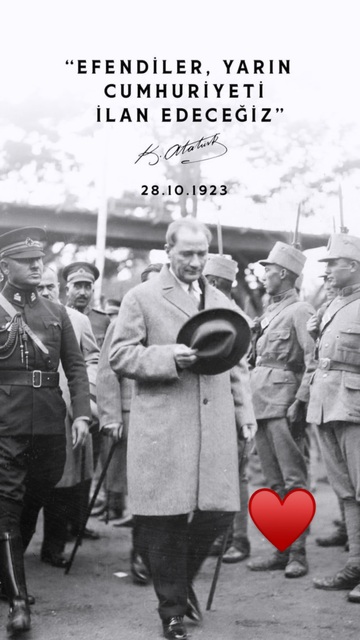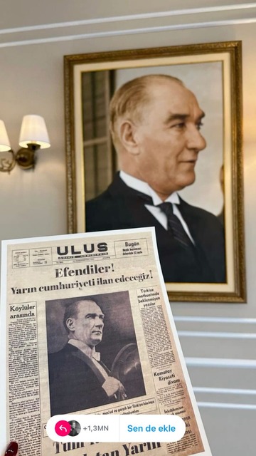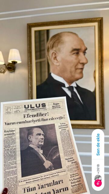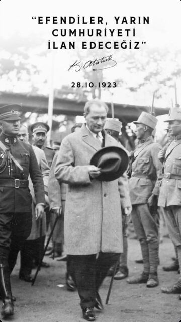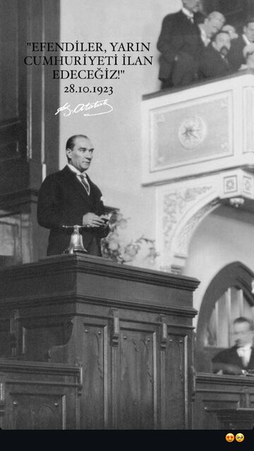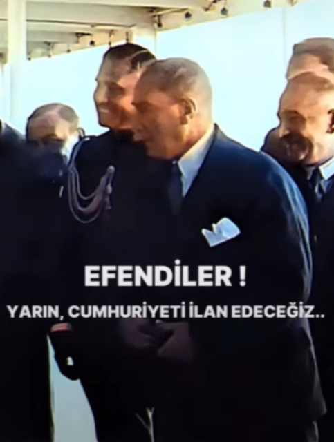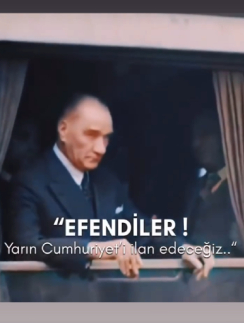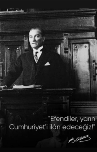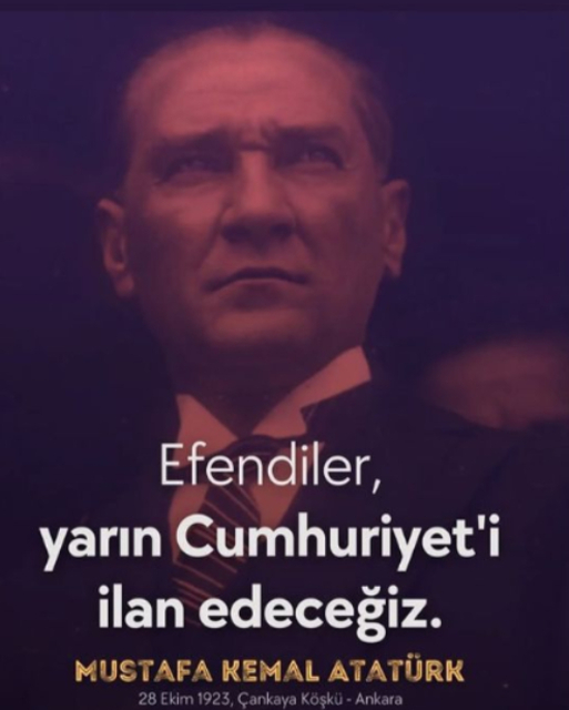 Cumhuriyet'in kuruluşunun 101'inci yılını kutluyoruz. Mustafa Kemal Atatürk'ün, 28 Ekim 1923'te Çankaya Köşkü'nde; "Efendiler! yarın, Cumhuriyet'i ilan edeceğiz" cümlesi, her yıl olduğu gibi bu yıl da sosyal medyanın gündeminde yer alıyor. Ünlüler de kutlama çerçevesinde, Atatürk'ün; "Efendiler! Yarın Cumhuriyet'i ilan edeceğiz" cümlesini paylaşıyor