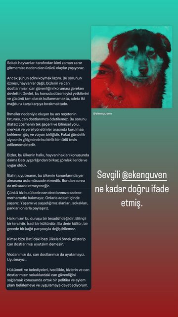 Türkiye'de gündemi uzunca bir süredir meşgul eden; can kayıplarına ve yaralanmalara neden olan sokak hayvanları sorunuyla ilgili gözler artık TBMM'de. Sokak köpekleri önce sahiplendirilmeye çalışılacak, eğer sahiplenen olmaz ise 30 gün sonra sokak hayvanları uyutulacak. İşlenecek süreçte ise her belediye, barınaklarındaki kapasite kadar hayvanı çekerek sahiplendirme ilanı yayınlayacak. Ardından sahip çıkan olmazsa sokak hayvanları iğne yöntemiyle uyutulacak. Sahiplendirilen köpeklere de çip takılacak. Fakat sokak hayvanlarına yönelik kanun teklifi ünlülerin tepki göstermesine neden oldu