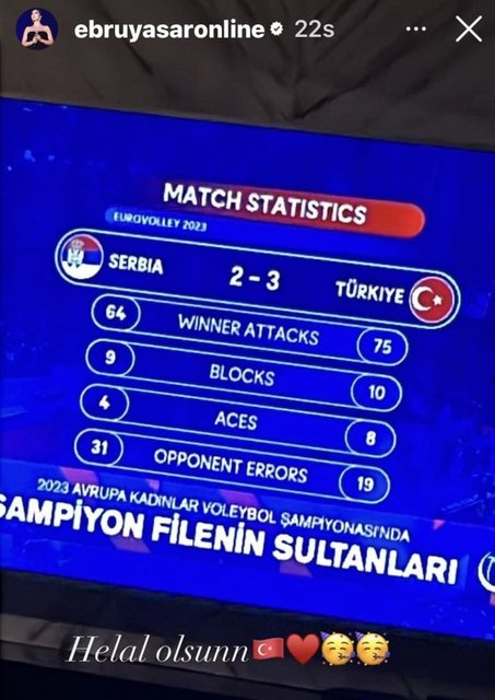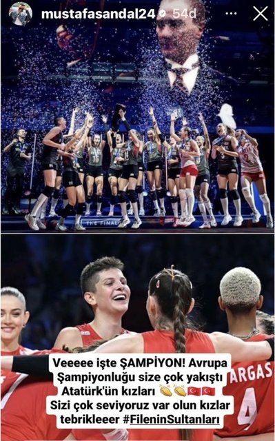 Siz orada nefes nefese, biz ekran başında… Bu gece de kalbimiz sizinle attı evlatlar... Bu büyük bir başarı. Siz kendinize, biz size inandık. Ve işte Filenin Sultanları Avrupa Şampiyonu... Bize üst üste yaşattığınız bu büyük gurur için size sonsuz teşekkürler. Azminize, gücünüze, emeğinize sağlık. Hepinize sıkı sıkıya sarılıyorum. İyi ki varsınız Filenin Sultanları...