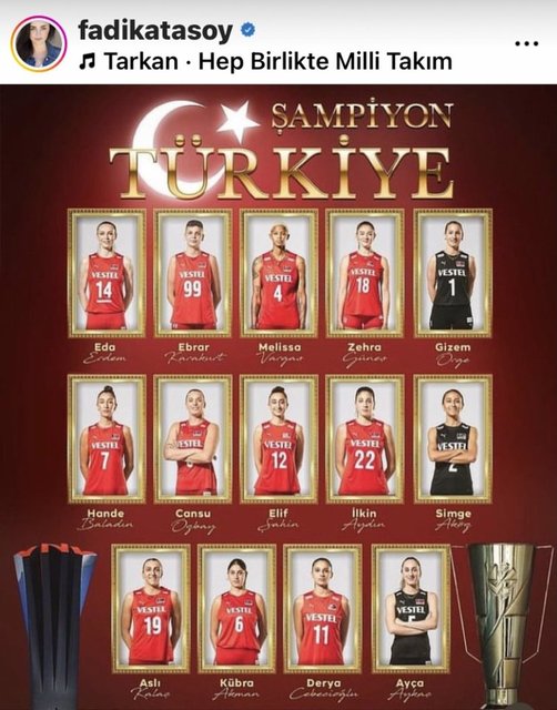 Gururumuzsunuz kızlar. Her daim yanınızdayız.Yolunuz açık olsun. Şampiyonluk tüm Türkiye'ye, Cumhuriyetimizin yüzüncü yıl armağanı olsun.