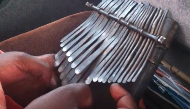 Mbira, Zimbabve kökenli bir ev yapımı çalgıdır ve hâlâ bazı Afrika bölgelerinde kullanılmaktadır. Metal anahtarlar, ahşap bir ses tahtasına monte edilmiştir.