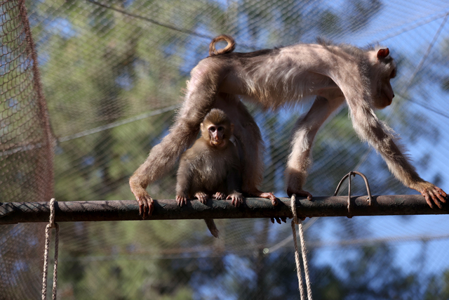 Ziyaretçilerin 'yetimler barınağı' adını verdiği kafeste yeni ailesine alıştığı ve yetişkin bireylerin yanından hiç ayrılmadığı gözlenen maymun yavrusu, ziyaretçilerin de ilgi odağı oldu.