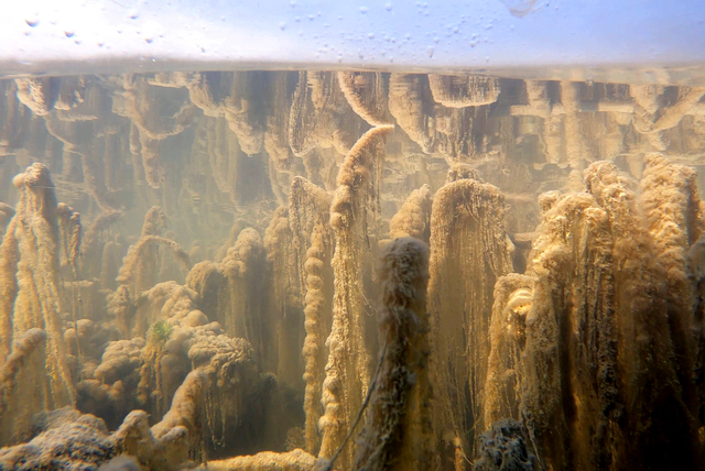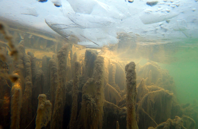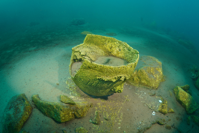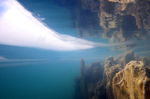 Sahil Güvenlik Van Gölü Grup Komutanı Binbaşı Fırat Aslan'ın yaptığı dalış sırasında duvarın üzerinde amfora (antik testi) parçalarına da rastlayan Ceylan, kıyı bölgelerinde oluşan buz tabakasının altından gölü görüntüledi.