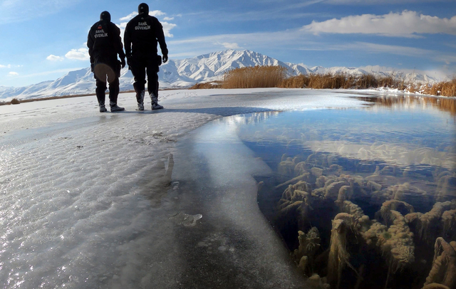 Sahil Güvenlik Van Gölü Grup Komutanı Binbaşı Fırat Aslan da dalışlarımıza eşlik etti. Gölde buz tutma oranı düşük olsa da kıyısal alanda buz altından birkaç görüntü almayı başardık. Van Gölü'nün sırlarını aralamaya devam edeceğiz."